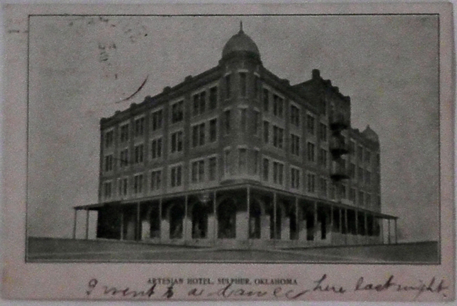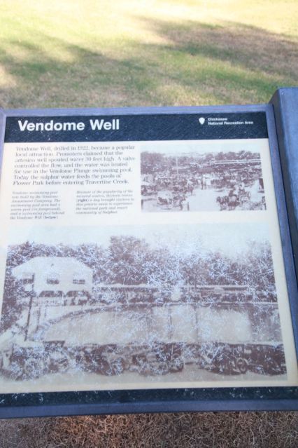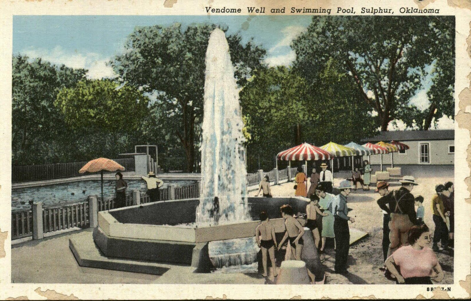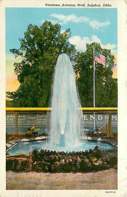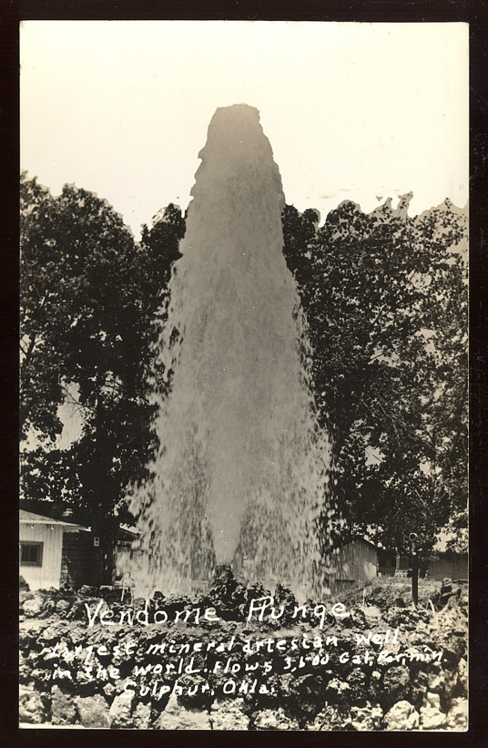 Back in the early 1900s, Sulphur, like many towns in the US that had saline springs or wells was a resort destination where people could partake of the waters in the hopes of curing various ailments. Mineral water was a booming business up until the 1940s (or so) when the Feds required science to back the various medical claims as to the curative powers of the waters. Since there was no supporting science, many resorts, no longer able to make ludicrous claims, faded away. The Vendome Well and Sulphur, in general, were no different.
